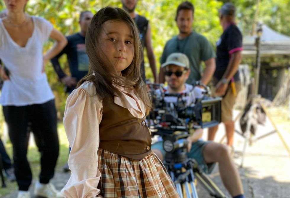 Atriz mirim Clarinha Jordão nos bastidores do filme “Minha Irmã e Eu” – Foto: Divulgação
