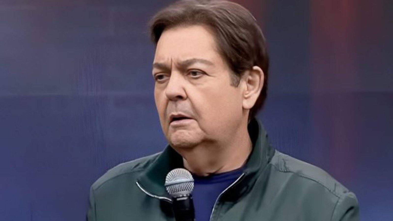Faustão com um microfone falando