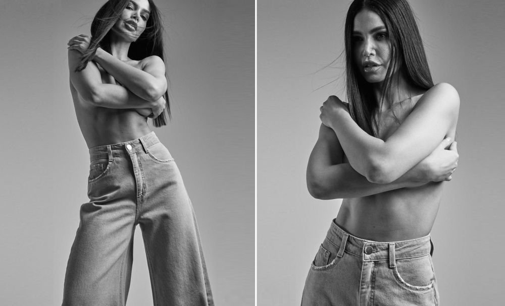 Durante o ensaio a beldade utilizou as calças jeans mais desejadas do momento no mundo da moda, em poses pra lá de sensual.