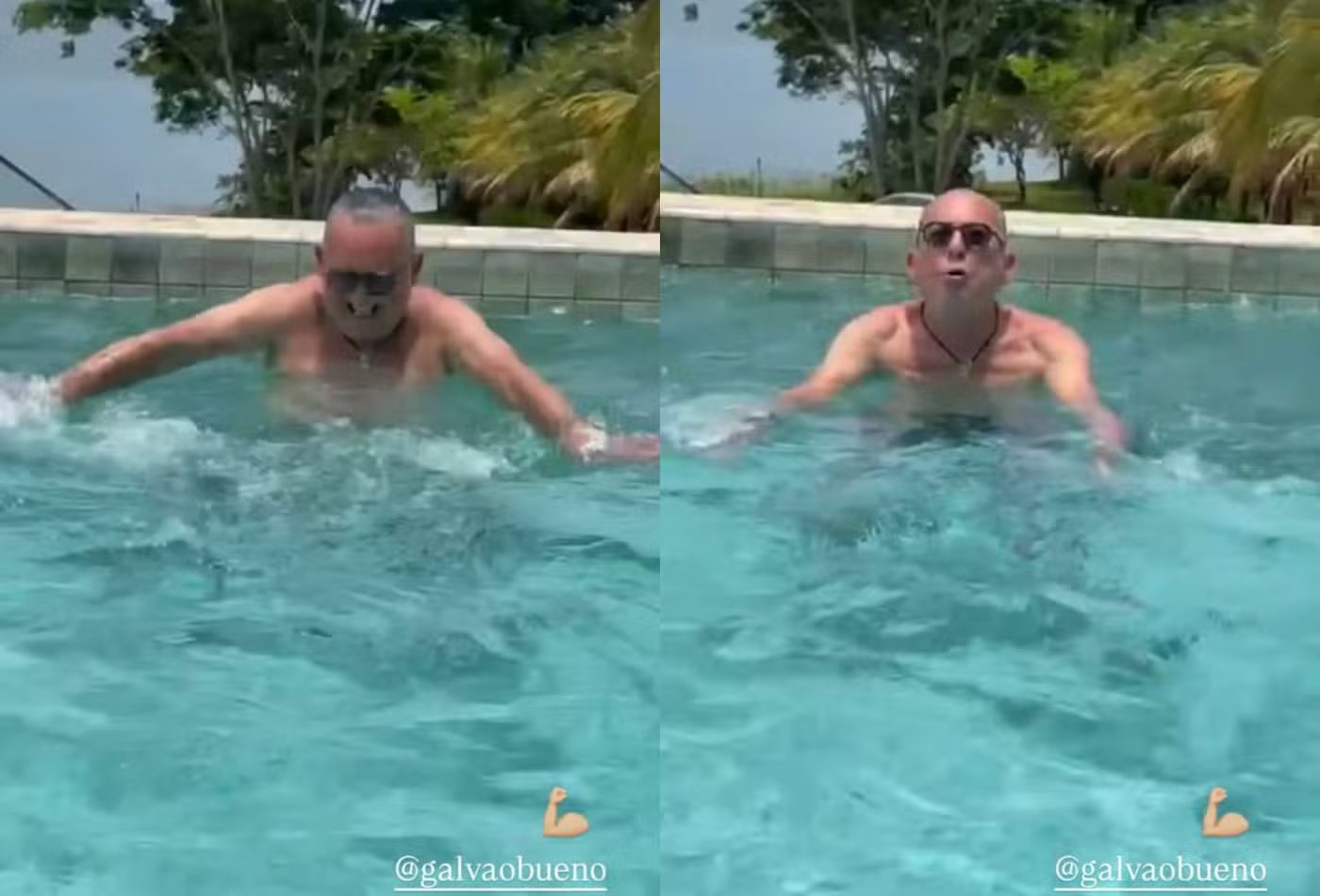 Galvão Bueno surge nadando em piscina e mostra recuperação após internação