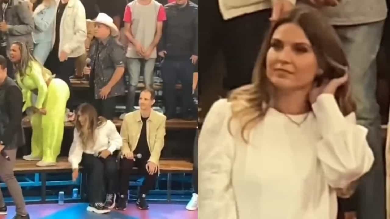 Um vídeo das gravações do Altas Horas com a presença de Gretchen e Aline Barros viralizou nas redes sociais. Nas imagens, a eterna Rainha do Rebolado aparece dançando com o bumbum empinado. A seu lado, a cantora gospel pareceu estar desconfortável com a cena e fez cara de poucos amigos, gerando o maior climão.