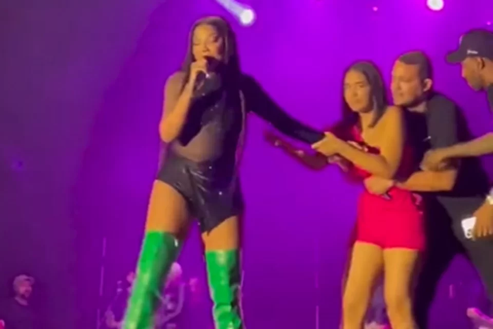 Ludmilla interrompe show, após invasão de mulher embriagada – Foto: Twitter