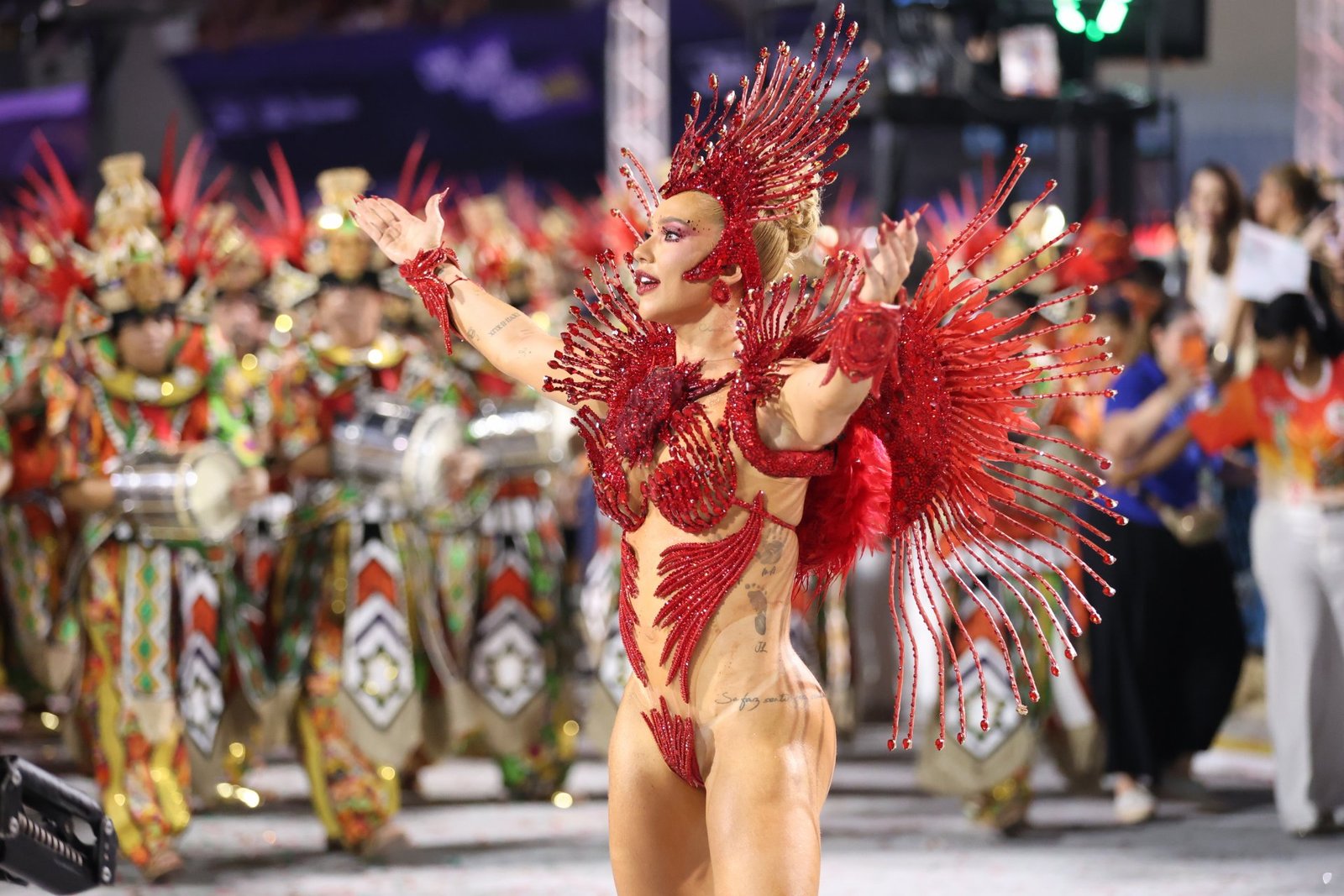 Questionada sobre a apresentação da loira, a atriz fez elogios, mas também aproveitou para orientar a novata. Viviane Araújo relembrou que dificuldades são comuns no início e fazem parte do aprendizado. Para ela, a fantasia escolhida por Virginia Fonseca não foi a mais adequada para uma primeira vez como rainha de bateria.